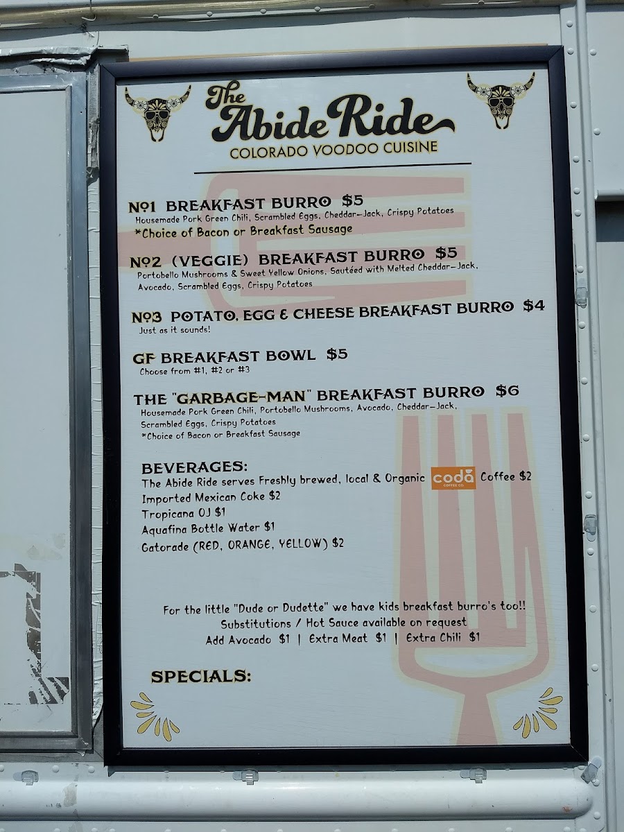 The Abide Ride Menu (Update 2025)